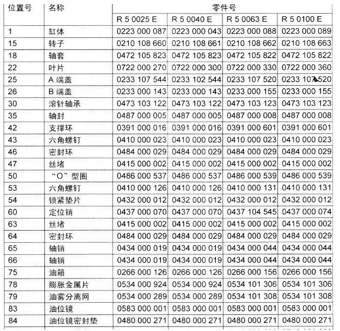 普旭真空泵分解圖RA系列位置號(hào)25-40-63-100